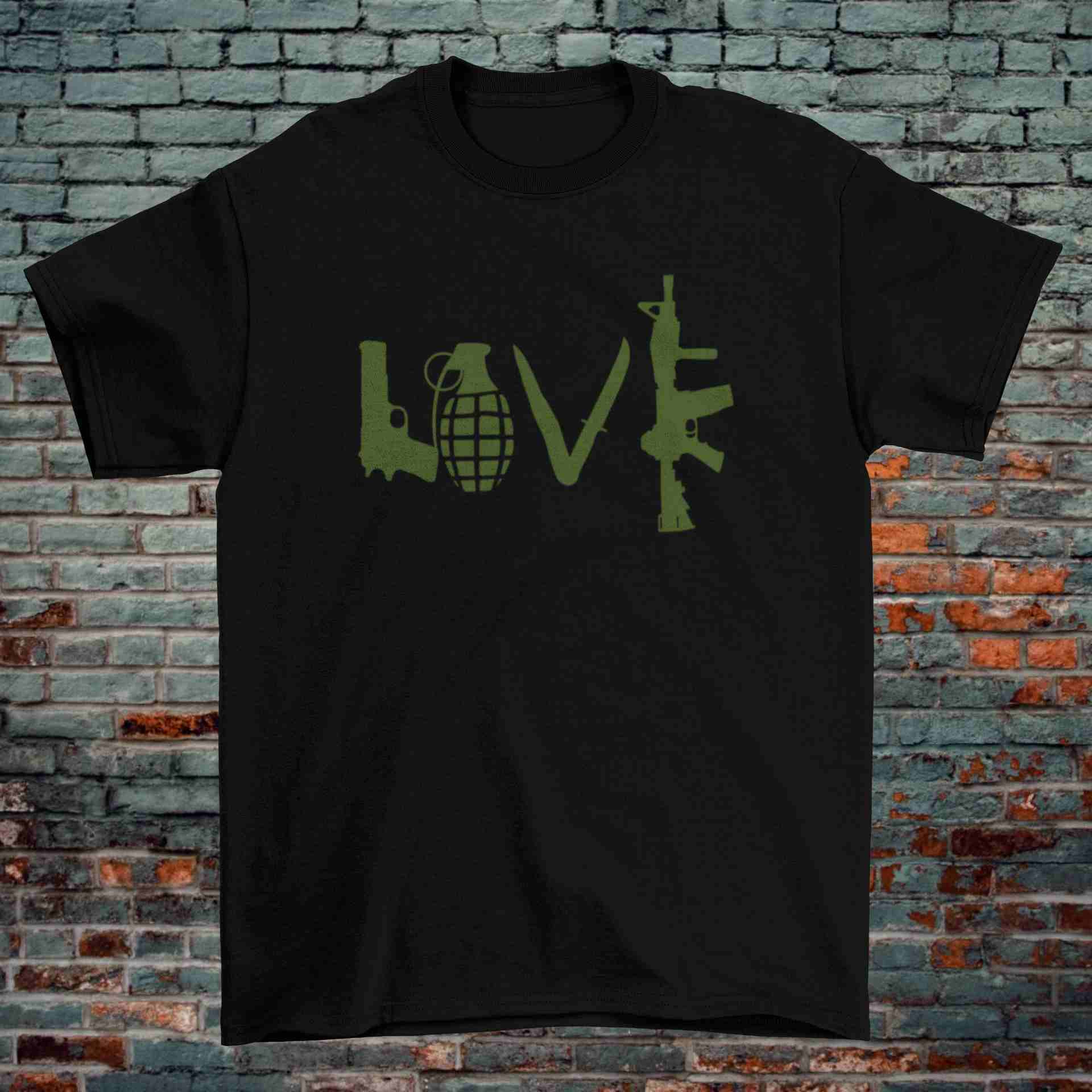 Make a bold statement with this 100% cotton t-shirt featuring a unique “LOVE” graphic designed with military-style elements. Soft, comfortable, and durable, this tee is perfect for those who appreciate edgy, meaningful fashion. Available in classic black or white, this shirt pairs effortlessly with any casual outfit. Stand out and express your style with this one-of-a-kind design.